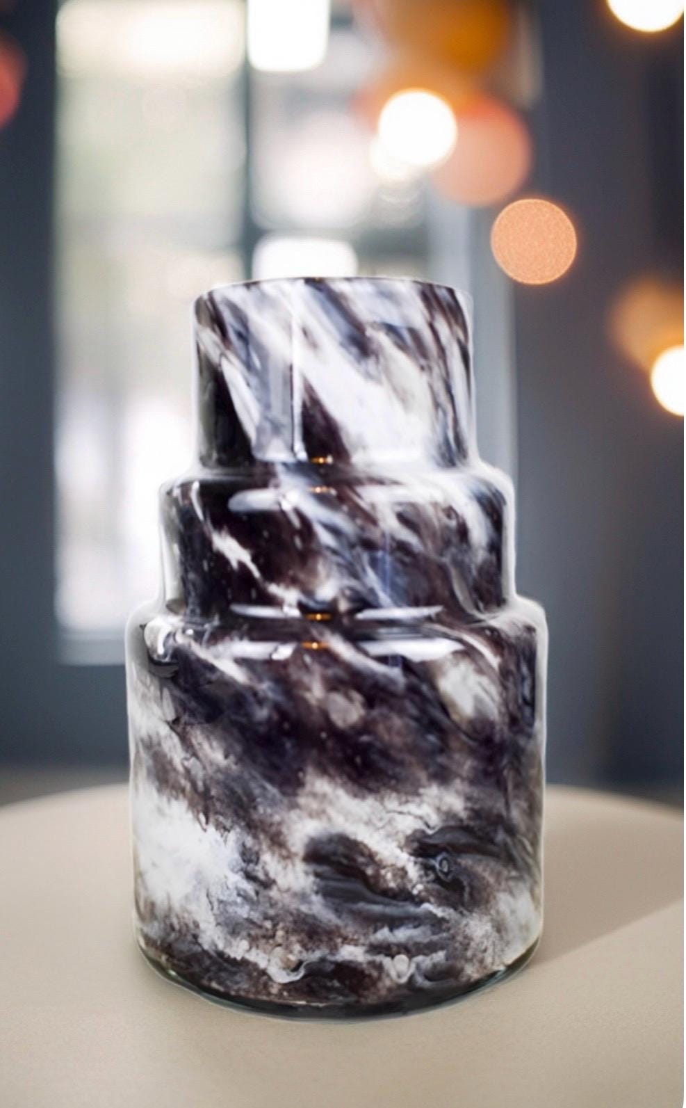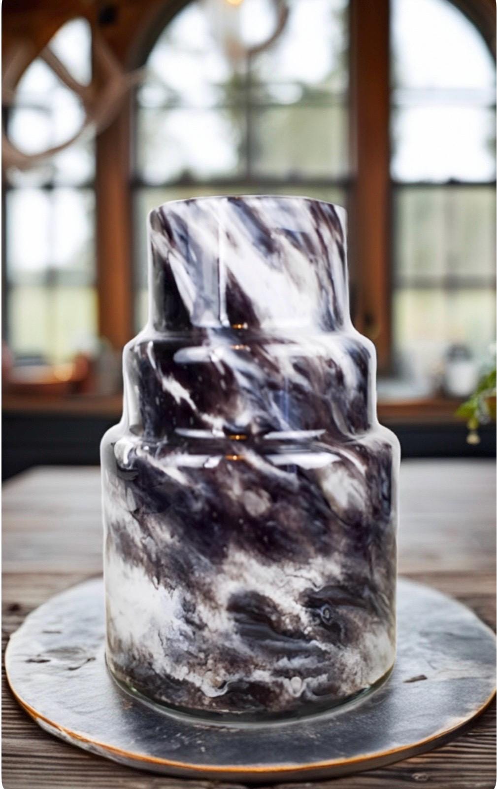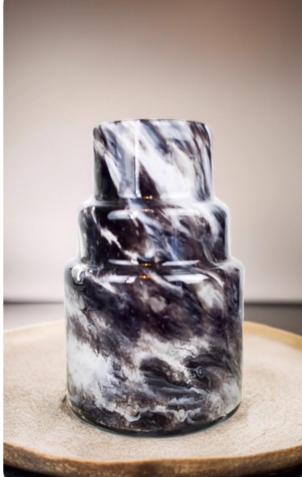 26cm Mouth Blown Black and White Glass Vase Home Decor