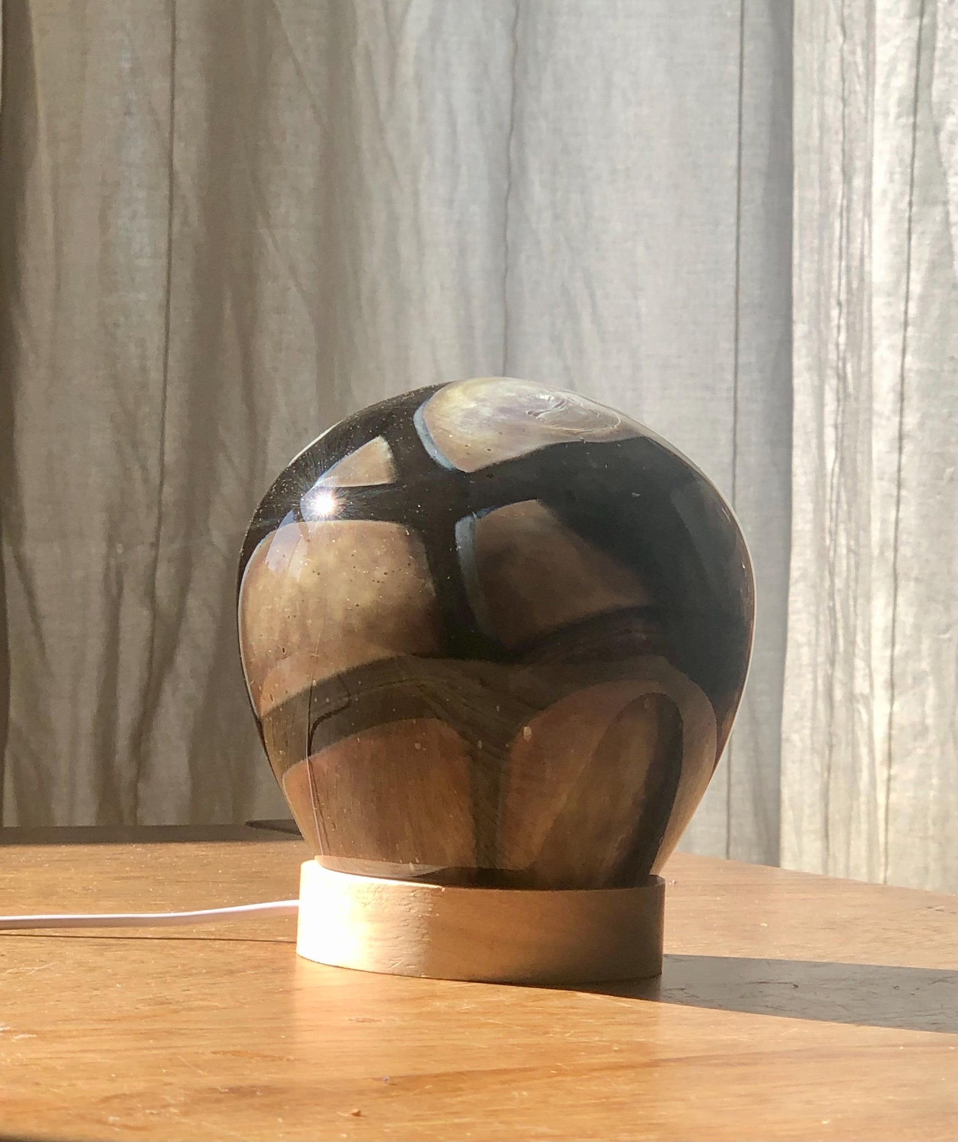 Handcrafted Amber Glass LED Lamp: Cosy Night Light, Unique Home Decor