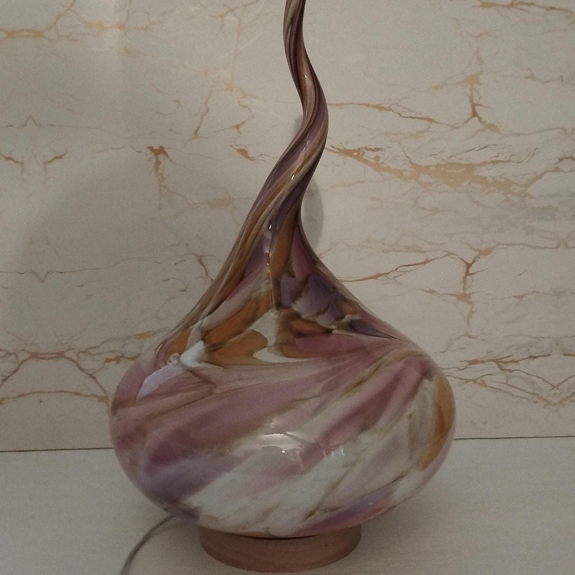 Add a warm and inviting glow to your home with this Artisan Amber Swirl Glass Lamp.