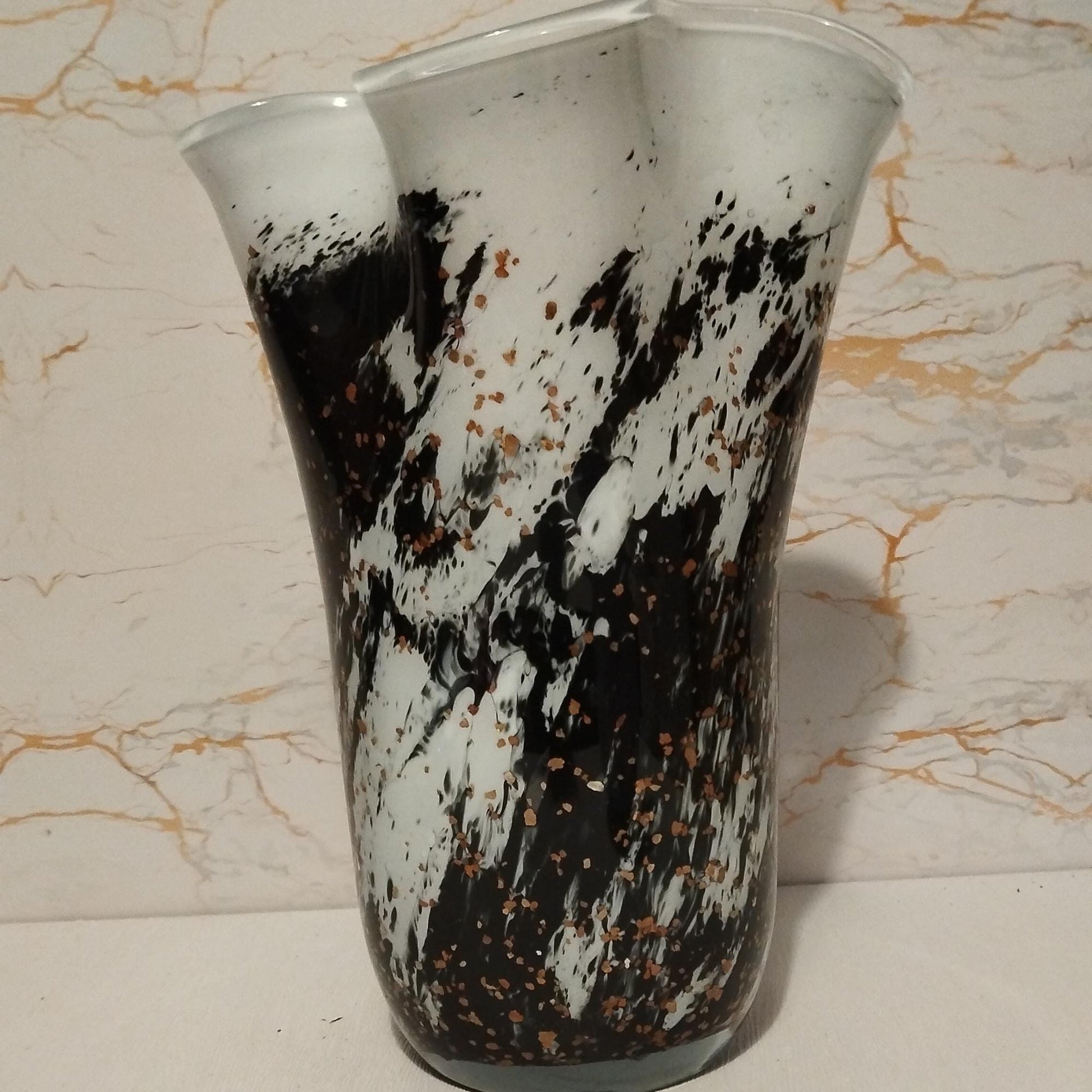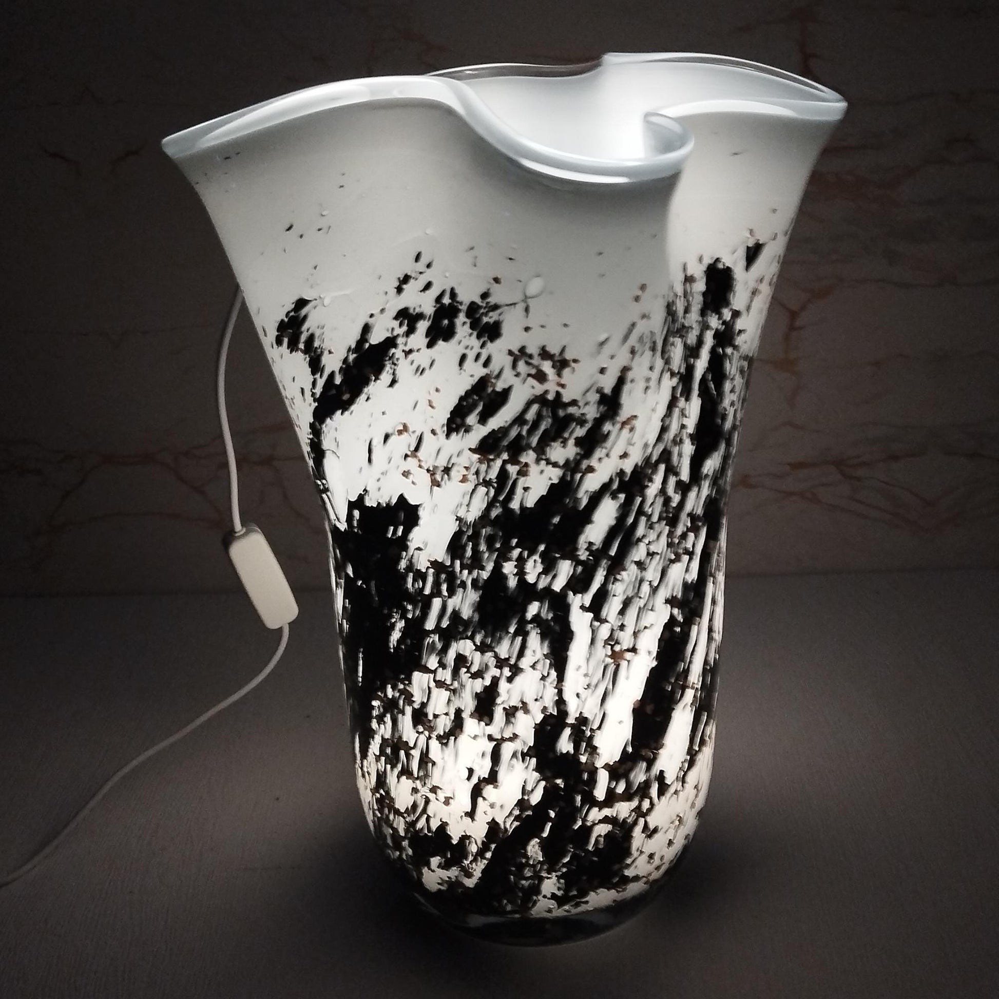 Add a modern touch to your décor with this Handcrafted Black & White Glass Vase Lamp. Each lamp is a unique piece of art, hand-blown from high-quality glass with bold black and white splashes, highlighted with subtle gold flecks. Designed to create a warm and inviting atmosphere, this lamp is perfect for any room, whether it's the living room, bedroom, or office. It uses a standard bulb (not included) and brings a soft, ambient glow to your space. An ideal gift for Christmas or as a stylish addition to your own home décor.