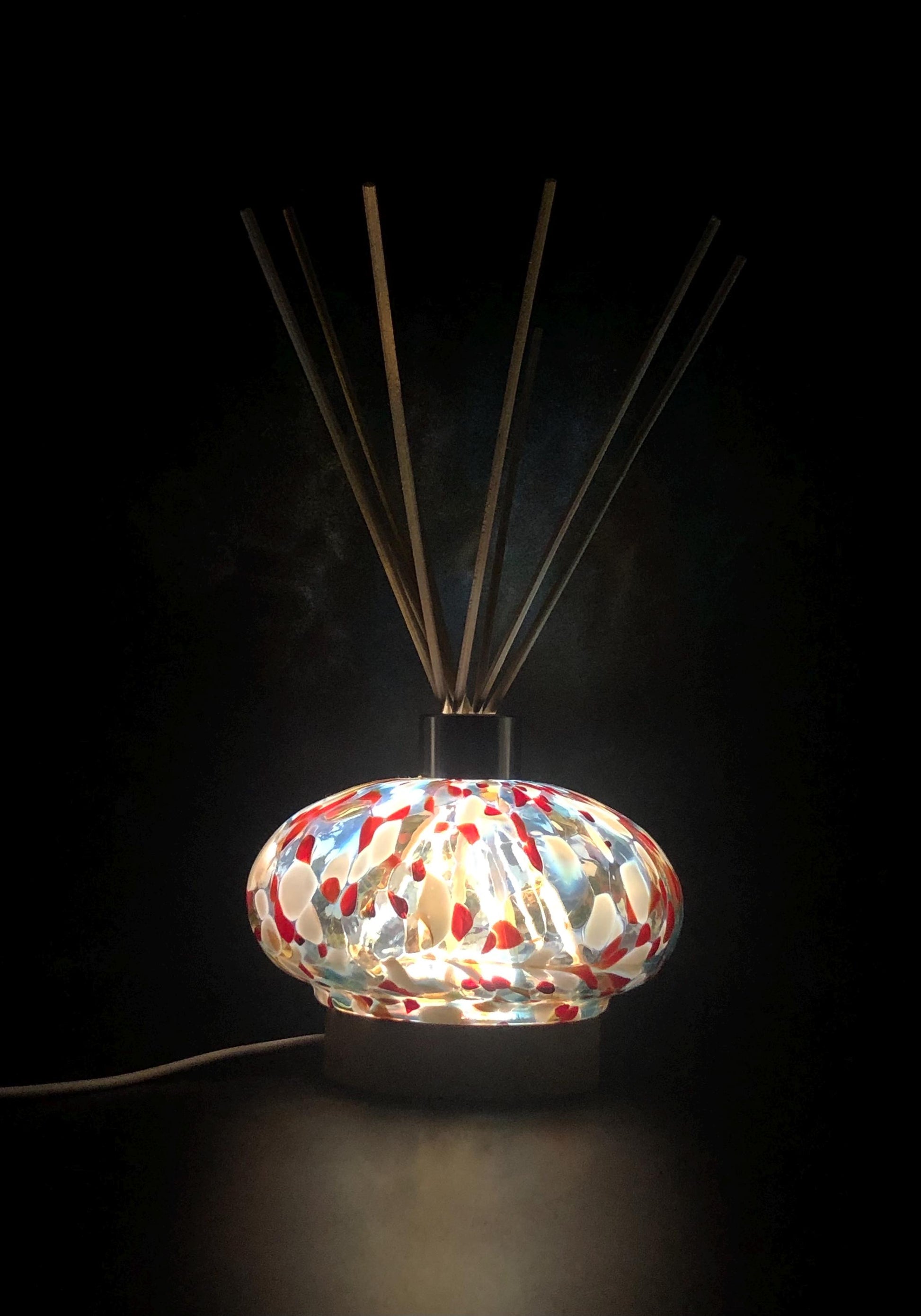 Enhance your living space with this Handcrafted Glass Diffuser Lamp , featuring a meticulously designed wooden stopper. This artisan-made piece seamlessly blends functionality with aesthetic appeal, serving as both a vessel for your favorite essential oils and a sophisticated addition to your home décor.