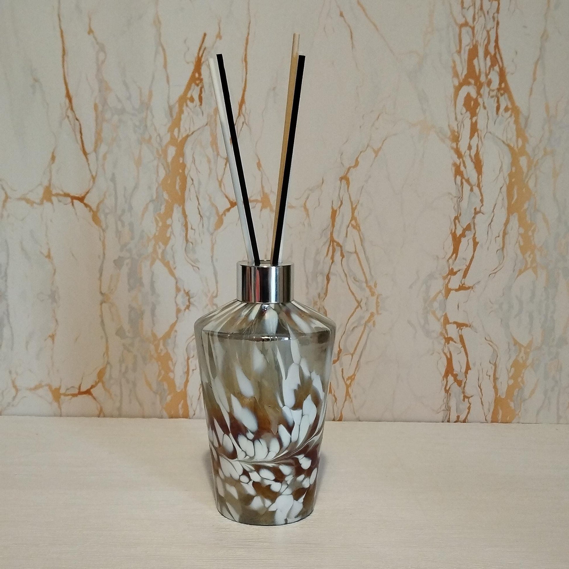 How to Use: Add your favourite essential oils or diffuser reeds to enjoy a soothing aroma. Turn on the LED light to illuminate the iridescent glass and set the mood. Transform your space with this artisan diffuser lamp, blending elegance and functionality for a truly special addition to your home.
