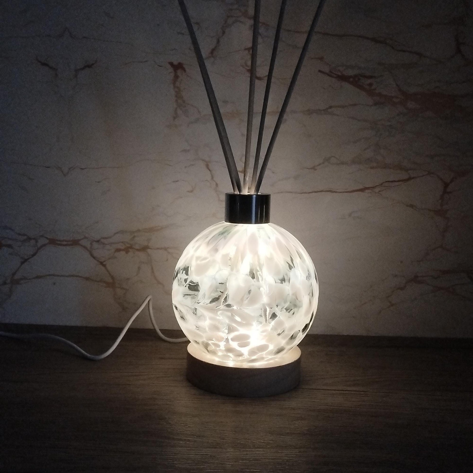 Handcrafted Round Glass Diffuser Bottle With Led Light – Unique Iridescent Home Decor, Artisan Reed Diffuser Lamp, Elegant Room Fragrance Elevate your home decor with our Handcrafted Round Glass Diffuser Bottle with LED Light, a beautifully designed piece that combines functionality with artistic elegance. This unique diffuser not only refreshes your space with soothing aromas but also doubles as a charming LED lamp, casting a warm, iridescent glow. Handcrafted from premium iridescent glass in a timeless round shape, this diffuser lamp is both a decorative accent and a practical addition to your home. Whether you're using it as a reed diffuser, a mood light, or both, it's the perfect blend of style and utility.