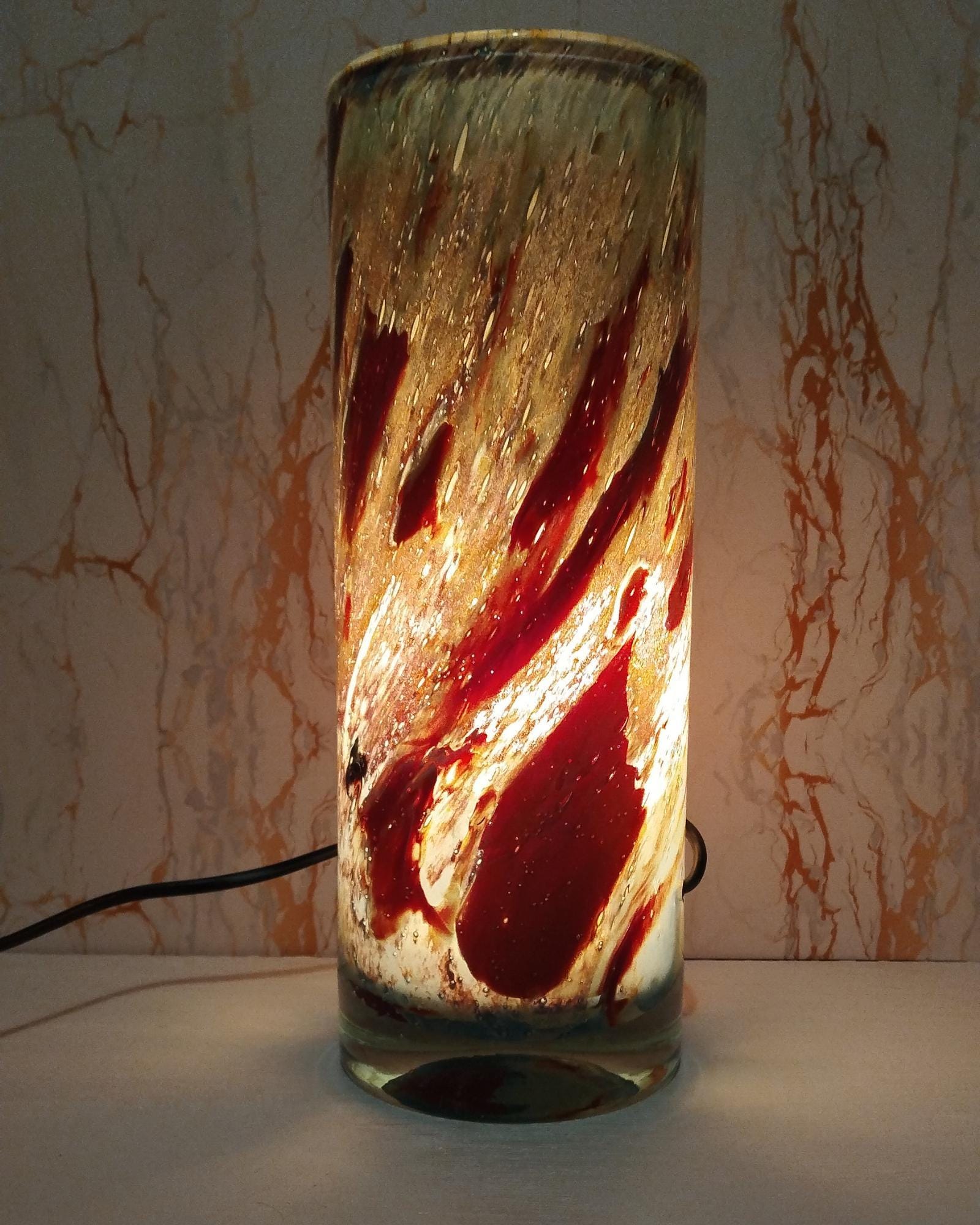Each lamp is one-of-a-kind, showcasing unique patterns in glass that make it a distinct piece of décor for your home. Ideal as a thoughtful gift for art lovers and those who appreciate bespoke craftsmanship.